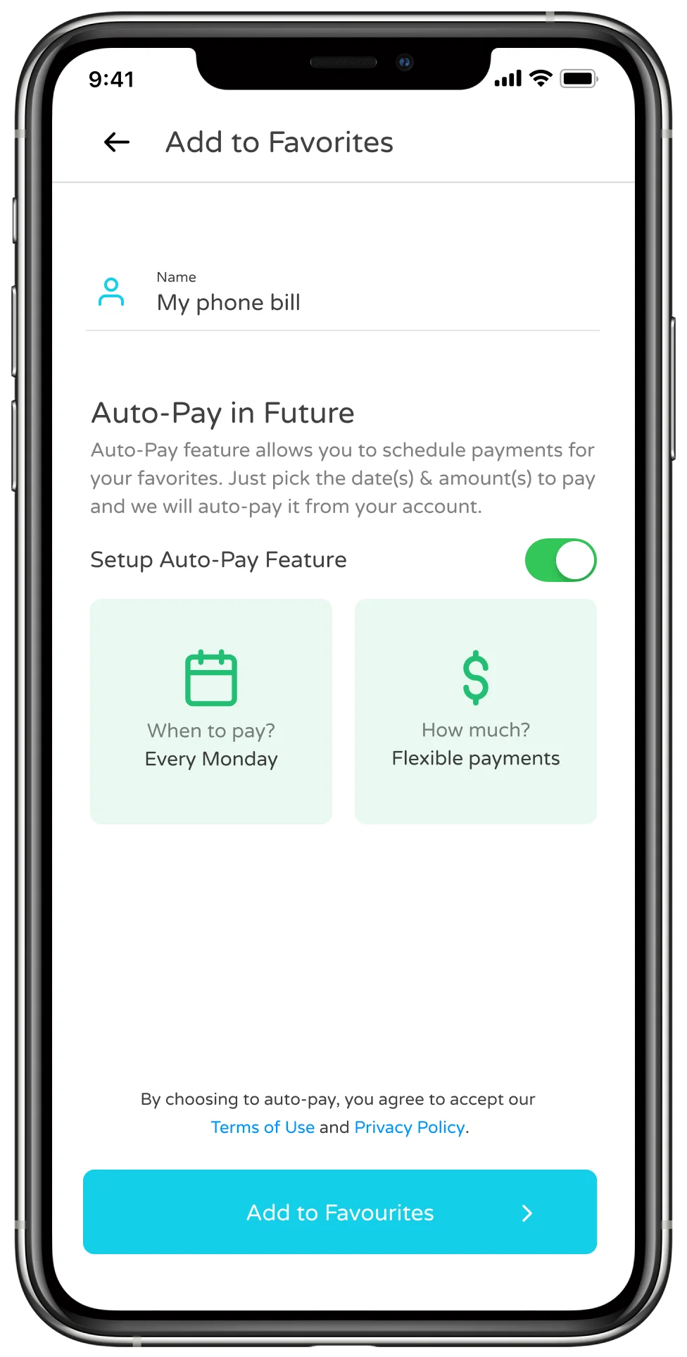 Auto-Pay feature for recurring payment.