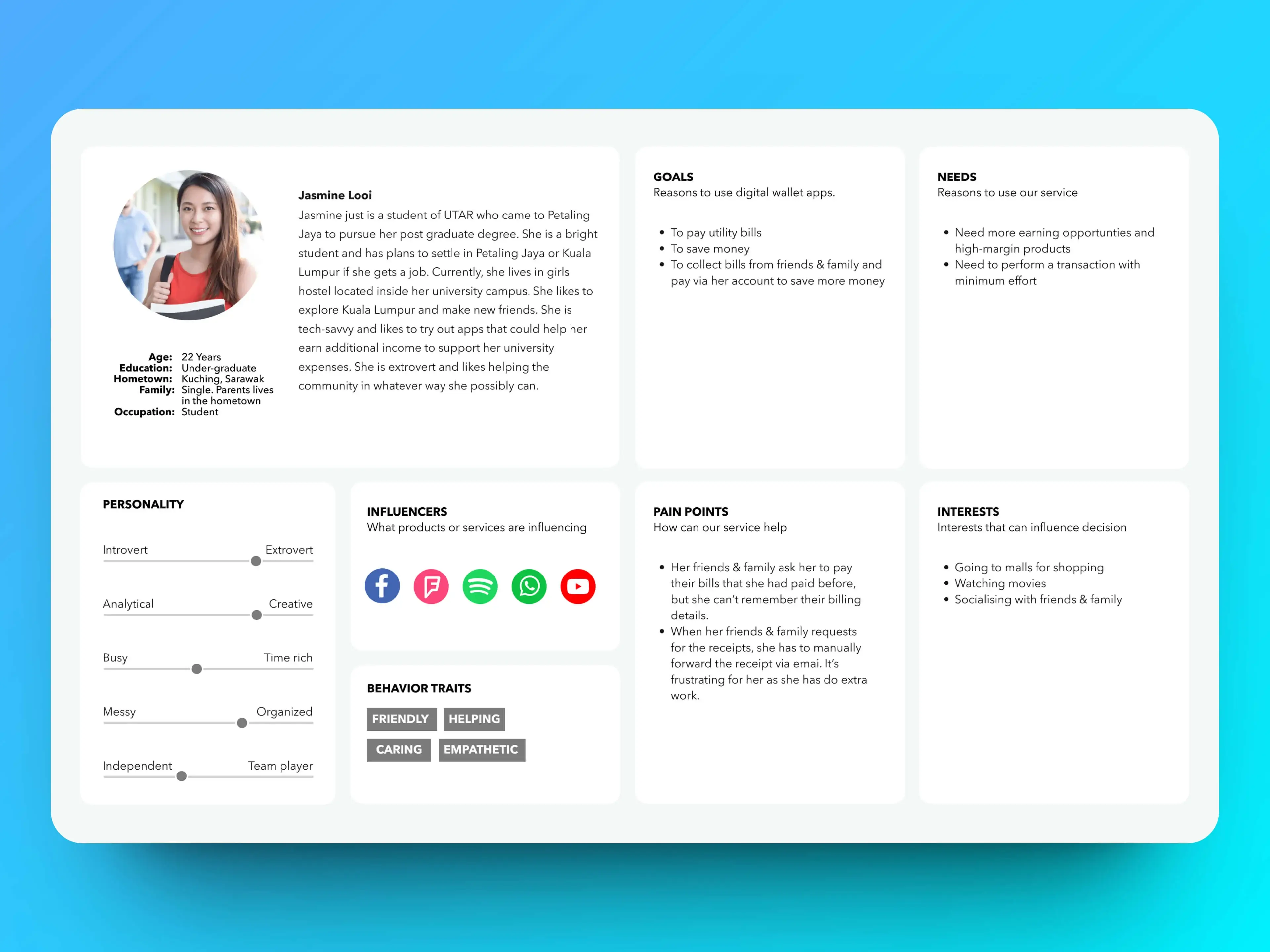 Throughout design discussions, I consistently referred to the personas to validate design decisions and prioritise features. By visualising users' personalities, goals, behaviours, and frustrations through the personas, I could empathise with our users more deeply and approach the product from their perspective.
