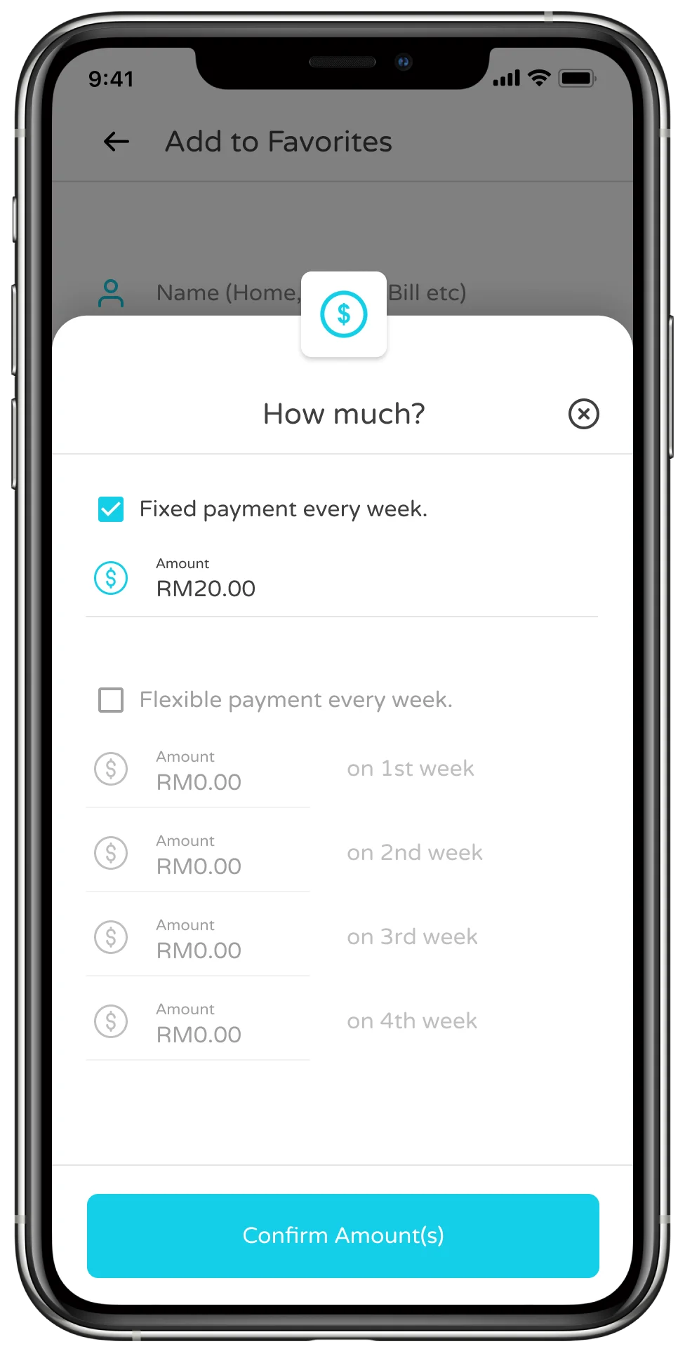 Weekly fixed or flexible payment.