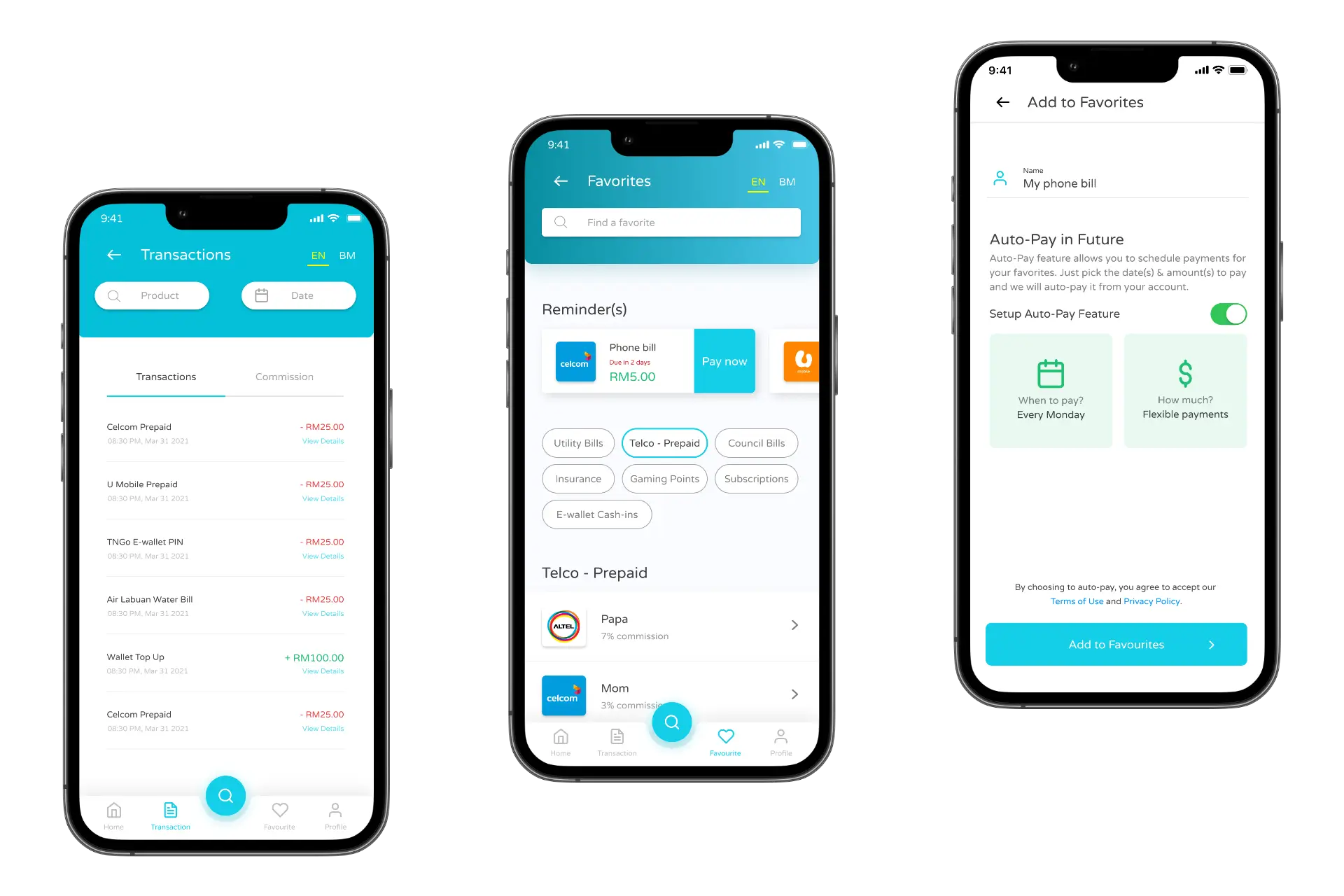 I created low-fidelity prototypes for each new feature that addressed a specific user's pain point. These prototypes were then tested on real users and key stakeholders. The prototype above shows the flow to perform a transaction and add it to the favorites list.